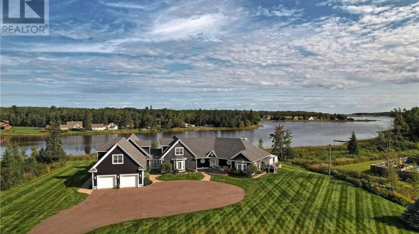 Waterfront Property is located just minutes from Pine Needles Golf Course and Bois Joli Beach. If you like to spend your summers on the water, kayaking, canoeing, paddle boarding, jet skiing, or fishing and your winters snowshoeing or snowmobiling, this is the perfect spot. The main house boasts three bedrooms and three and a half bathrooms, with garden doors from the principal bedroom, kitchen, and Den/Bar to the 80ft deck overlooking the water. The great room has a floor-to-ceiling cultured stone wood-burning fireplace for those cozy winter nights with a glass of wine and a good book, the radiant in-floor heat in the tile also adds a measure of comfort. The two-bedroom, two-bathroom Guest House has its own separate entry and deck and makes a great in-law suite or it can be used as an income property. The 347 sq ft storage room is lined with closets. The attached 25X23 ft garage has room for two cars and a separate 16X10ft heated workshop makes a great space for all those DIY projects. Seven minutes gets you to Shediac or Cap Pele and twenty minutes to Romeo LeBlanc Airport. The circular driveway can accommodate at least six cars. Welcome to paradise and enjoy the video. The Seller is a licensed REALTOR® in the Province of New Brunswick